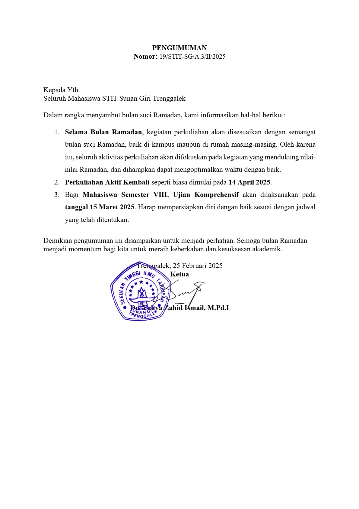 PENGUMUMAN PERKULIAHAN BULAN RAMADHAN