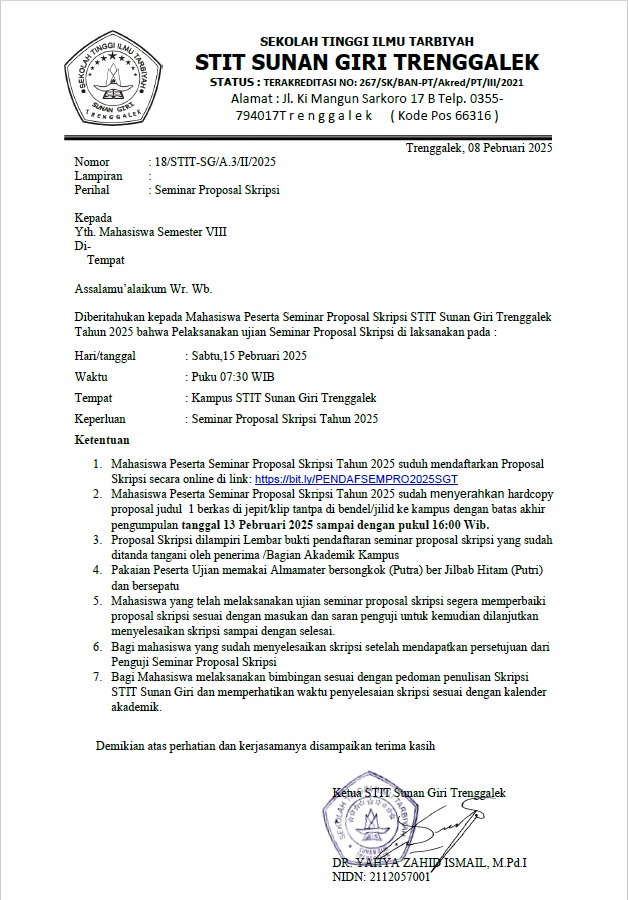 Pengumuman Undangan dan Pemberitahuan Wisuda XXX STIT Sunan Giri Trenggalek Tahun 2025